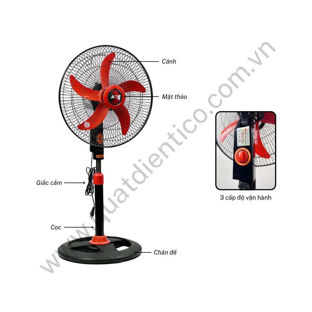 - Thiết kế chân đế vững vàng, giúp quạt đứng chắc chắn trong quá trình hoạt động.