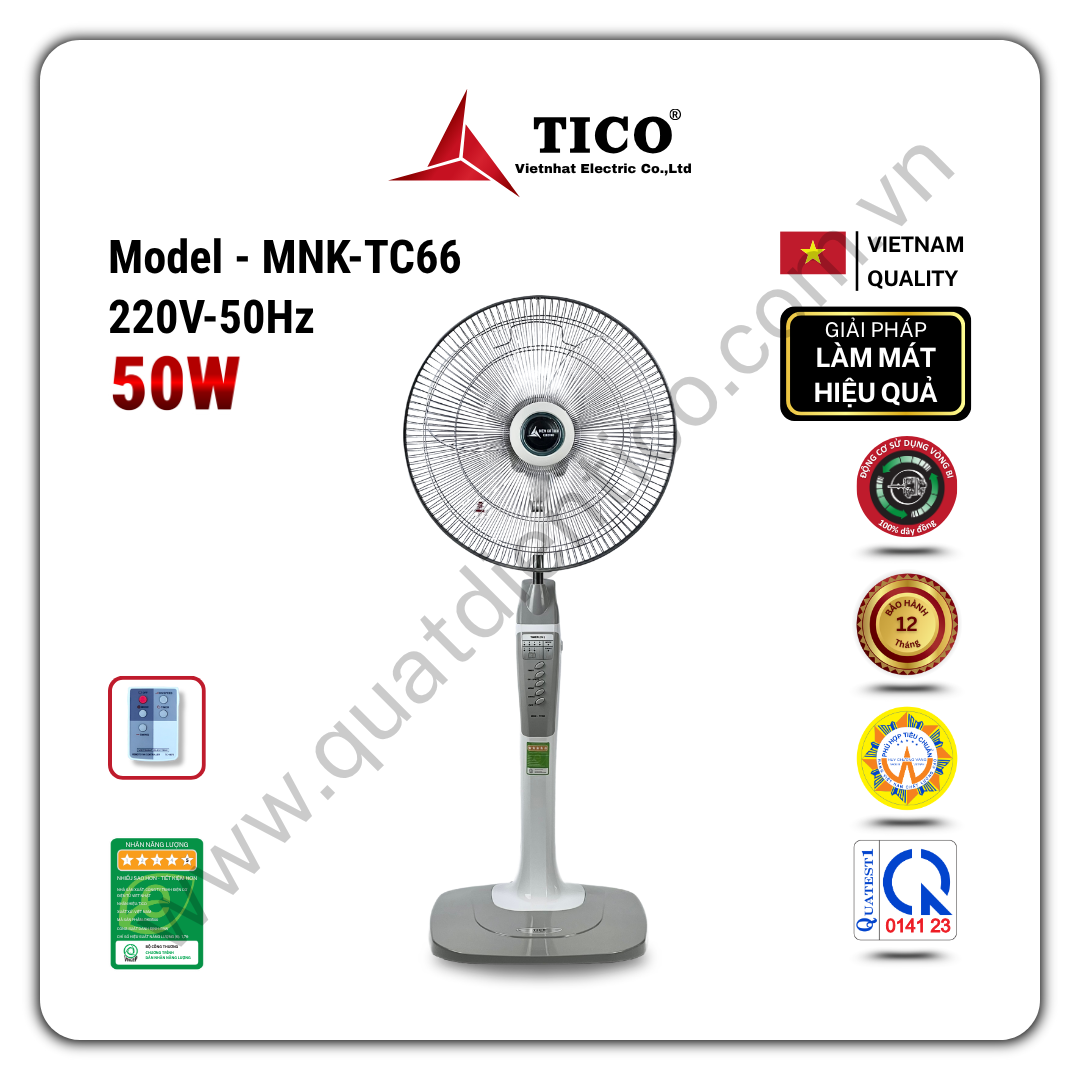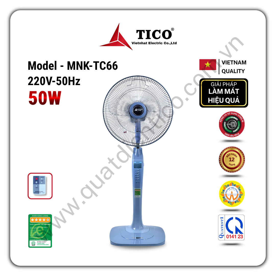 Với hơn 25 năm kinh nghiệm trong sản xuất quạt điện & thiết bị thông gió, TICO cam kết mang lại các sản phẩm có độ bền cao, hiệu quả ổn định và an toàn cho người sử dụng. MNK-TC66 là giải pháp làm mát tin cậy và tiết kiệm cho nhiều gia đình Việt.