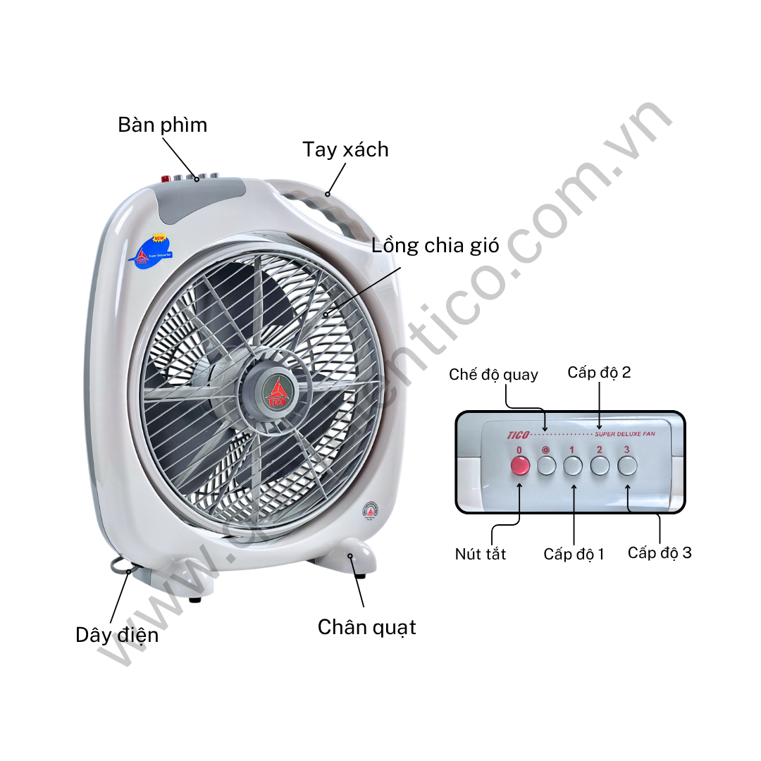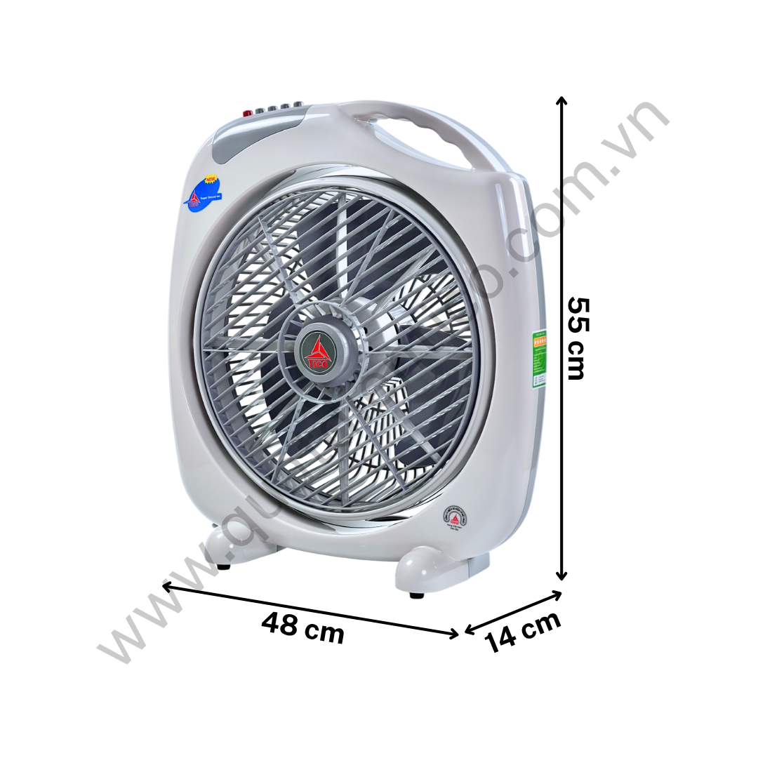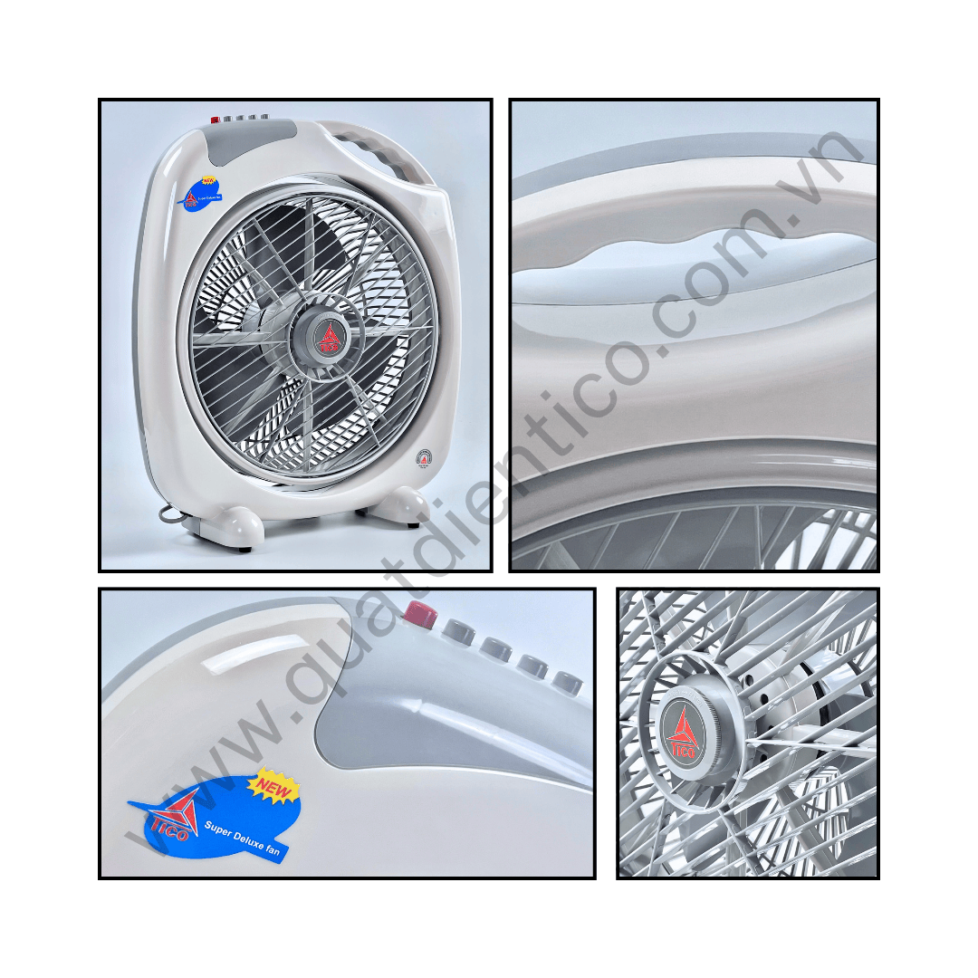 - Quạt hộp tản gió chuyển hướng điện TICO HB400 thiết kế vuông vức, chắc chắn, dễ đặt trên sàn, bàn, kệ hoặc góc phòng.