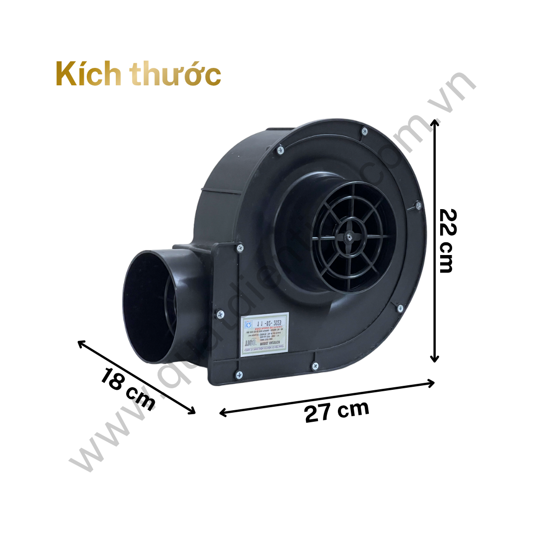 - Kích thước quạt 270 x 180 x 220 mm, thiết kế nhỏ gọn, dễ bố trí trong hộc kỹ thuật, trần giả, trần thạch cao hoặc khu vực kỹ thuật riêng.