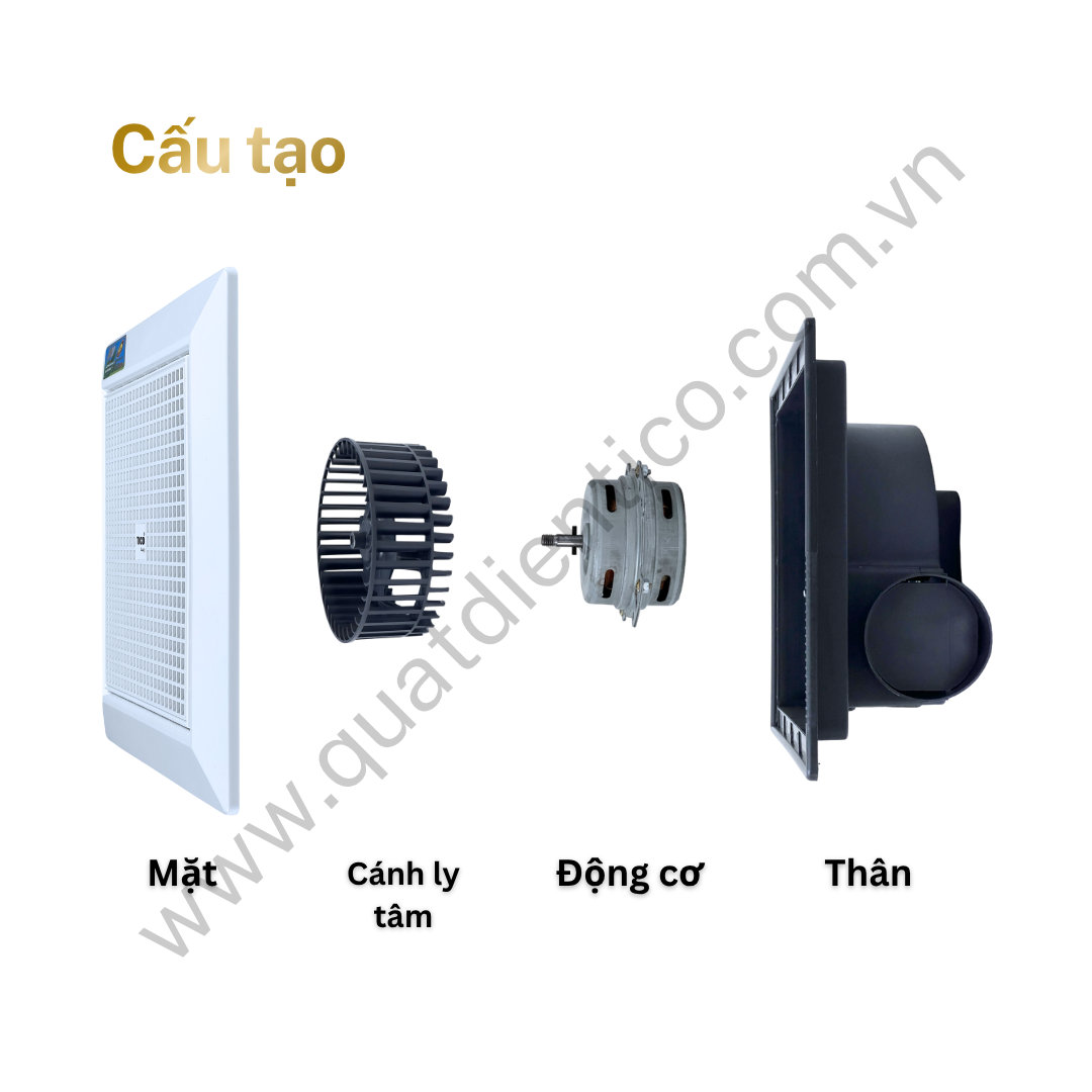 - Hút 1 chiều từ trong ra ngoài qua ống Ø100 mm, giúp đẩy khí nóng, ẩm, mùi hôi và không khí tù đọng ra ngoài, cải thiện chất lượng không khí trong phòng.