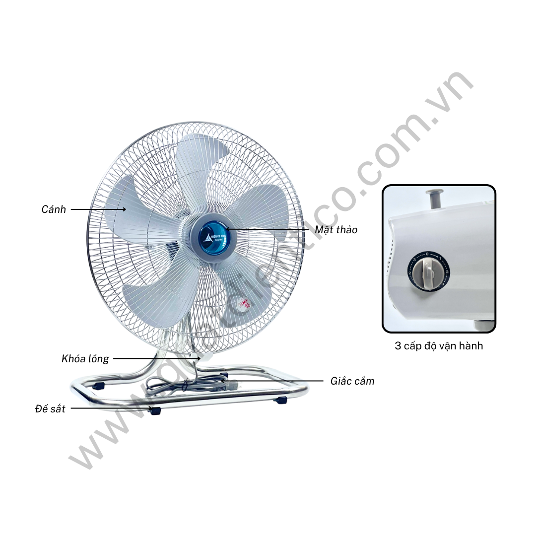 - Sải cánh 450mm, đường kính lồng 500mm giúp tạo gió mát sâu, lan tỏa đều khắp không gian.