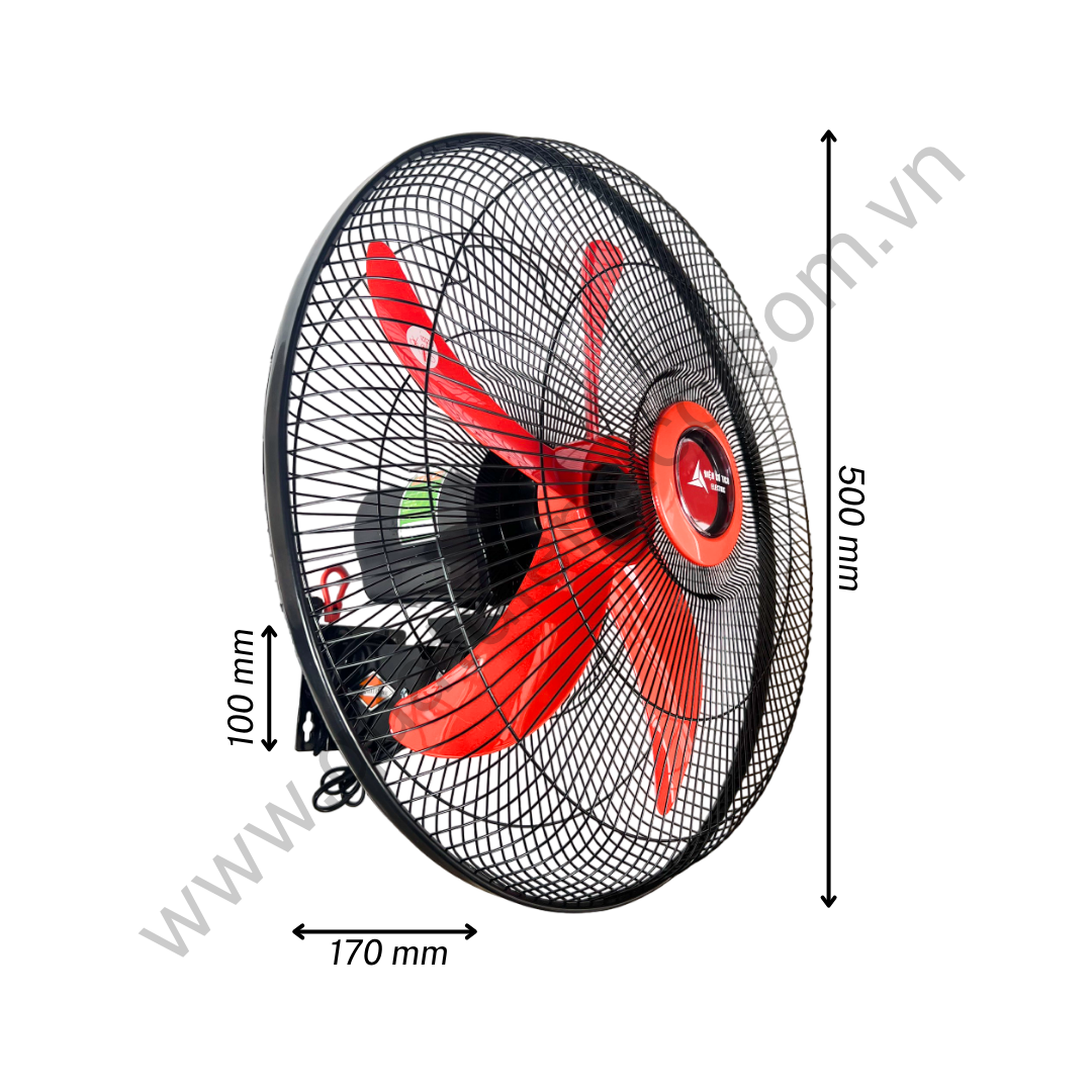 - Công suất 52W, sải cánh 450mm, đường kính lồng 500mm cho lưu lượng gió mạnh, làm mát hiệu quả khu vực làm việc.