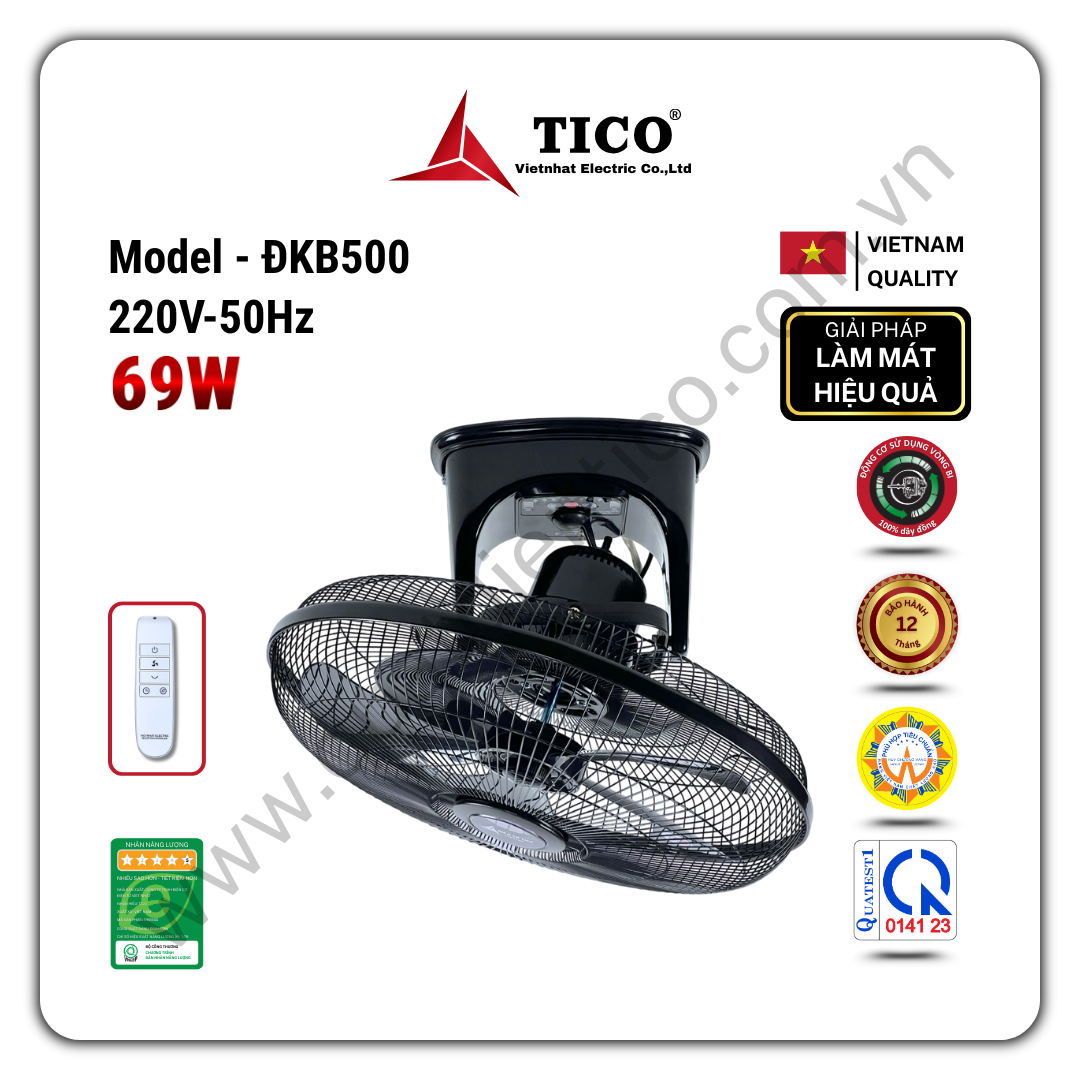 Quạt đảo trần điều khiển TICO ĐKB500 – Công suất 69W, sải cánh 450mm