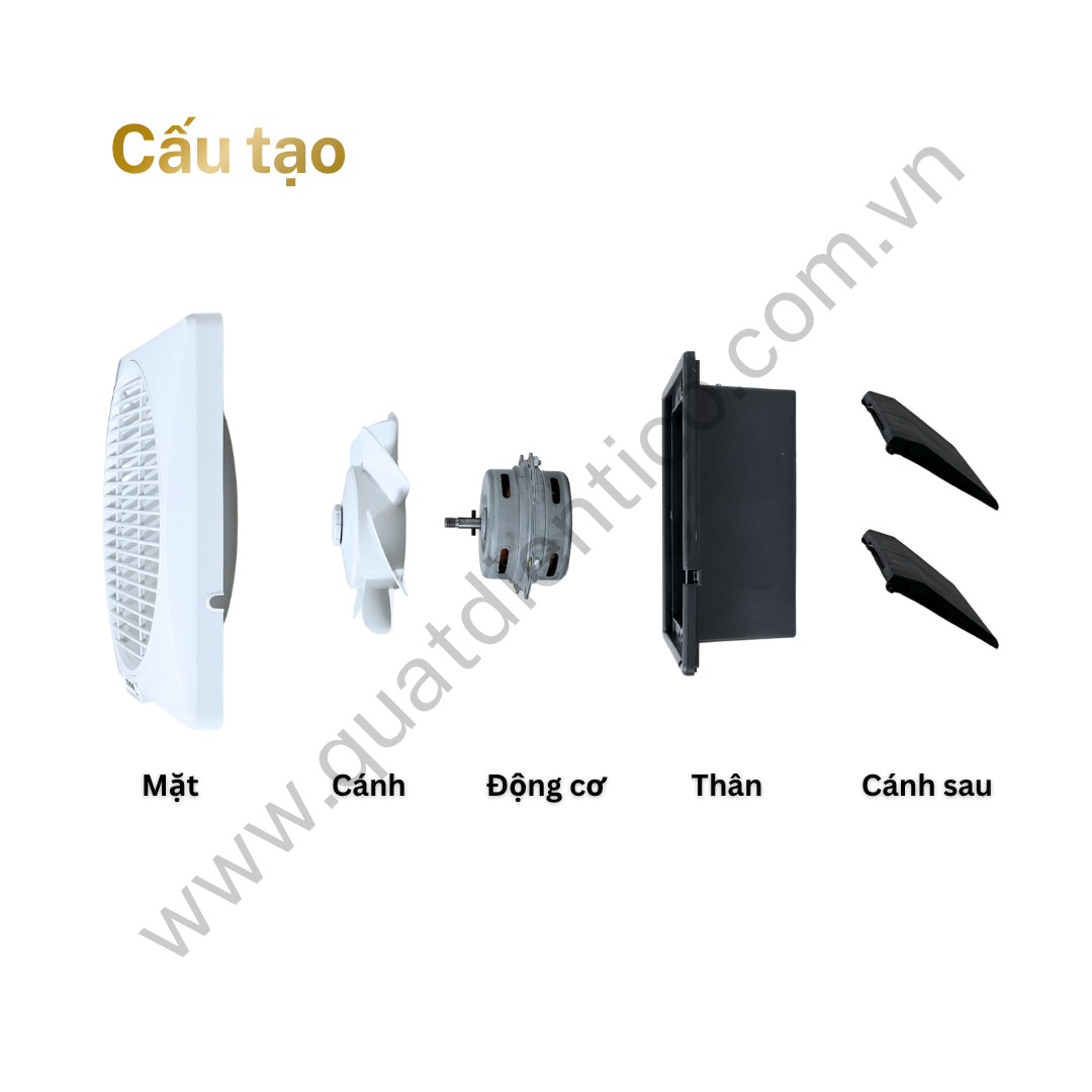 - Cánh quạt và thân quạt bằng nhựa ABS cao cấp, độ bền cao, hạn chế ố vàng, dễ vệ sinh và tháo lắp bảo dưỡng.